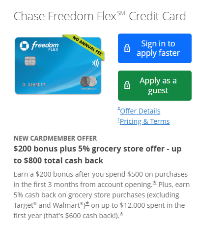 Step 3: Apply for Chase Freedom Flex and Spend $500 in First 3 Months ($200)