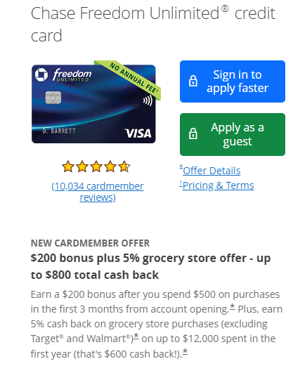 Step 2: Apply for Chase Freedom Unlimited and Spend $500 in First 3 Months ($200)