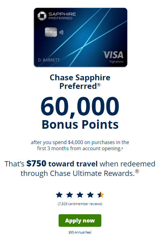 Step 4: Apply for Chase Sapphire Preferred and spend $4,000 in the First 3 Months ($600)