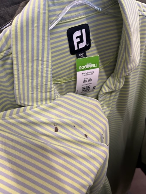 The things that do make it out to the floor are often ruined by employees tagging straight through the fabric instead of tagging the brand tag or the seam. Holes are made in the fabric. I have see hundreds of items ruined from this. Somehow this only happens at Goodwill—every other thrift store tags through the clothing seams or the brand tag.